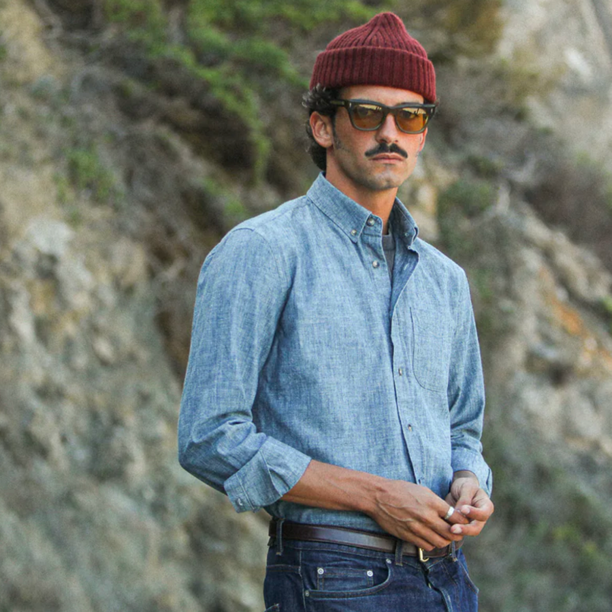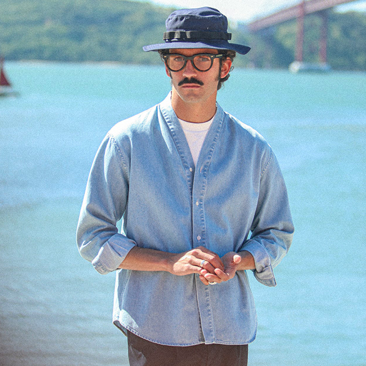 Drapeau Noir . Chemise Col Tailleur . Denim