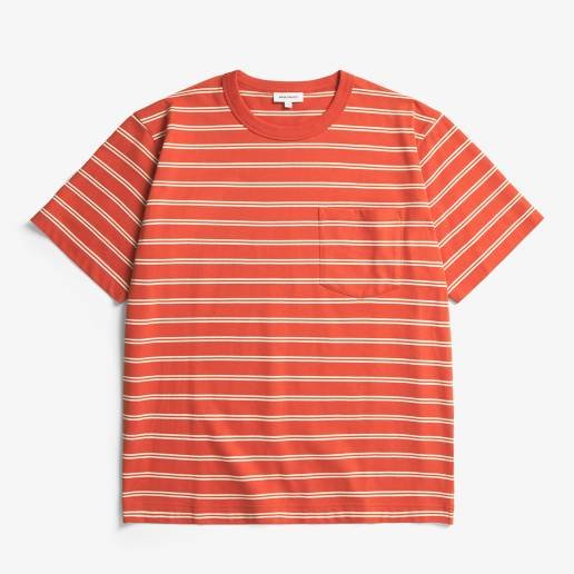 Norse Projects . Holger Organic Sailor Stripe Pocket T-Shirt . Blood Orange