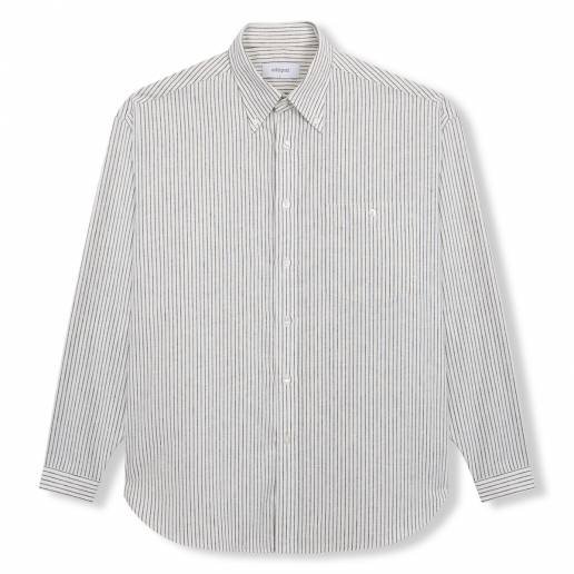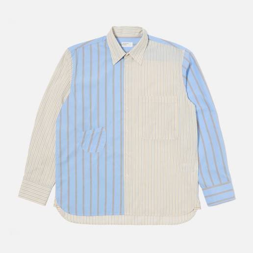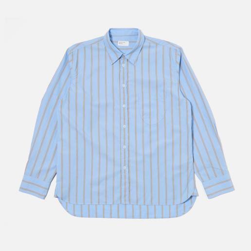 Universal Works . Station Shirt Pop Stripe Mix . Ecru Blue