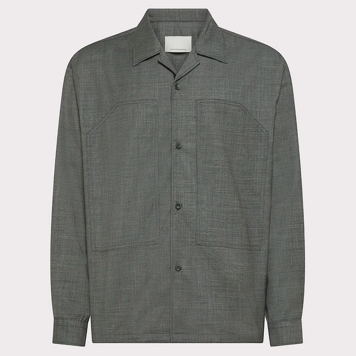 Elle est dotée de boutons en corne et de l’étiquette intérieure logo signature nine:inthe:morning.