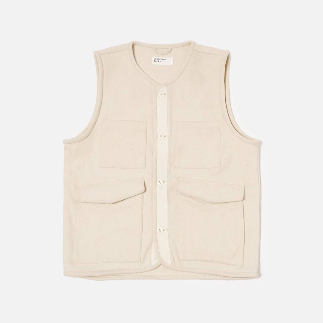Universal Works . 4 Pocket Gilet . Ecru Marl
