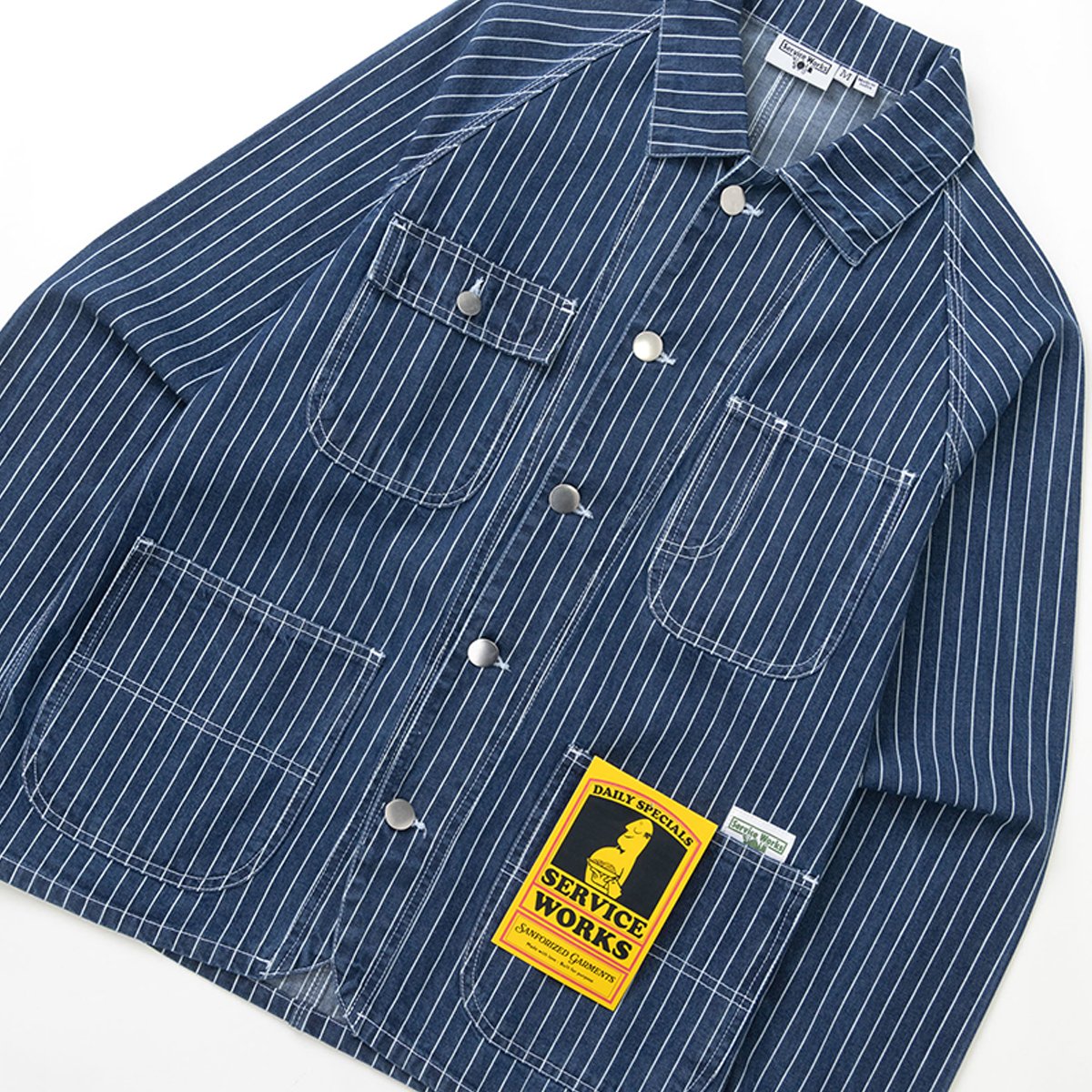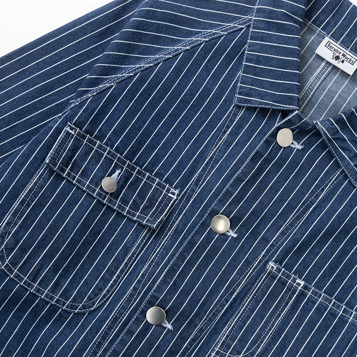Service Works . Pinstripe Denim Coverall Jacket . Indigo
