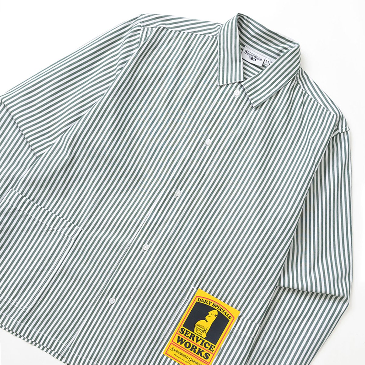 Service Works . Poplin Stripe Waiter Shirt . Forest
