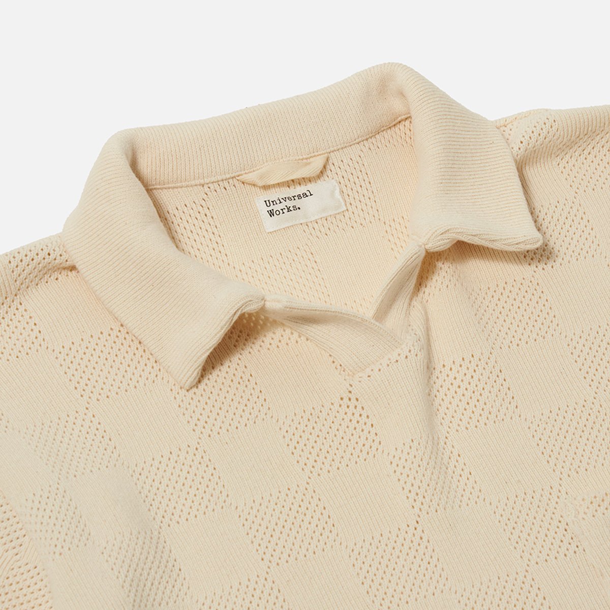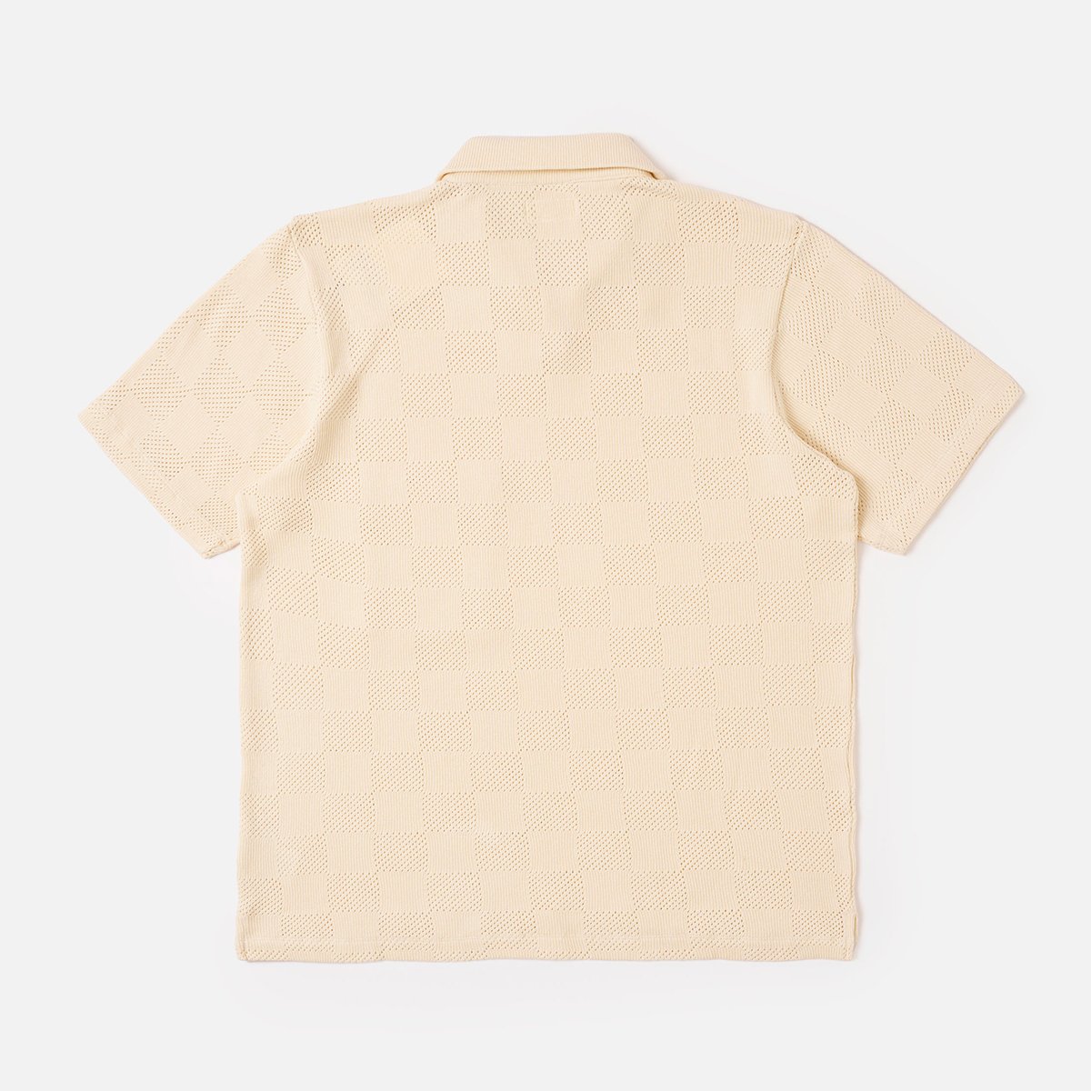 Universal Works . Vacation Polo Fantasy Checkerboard . Ecru